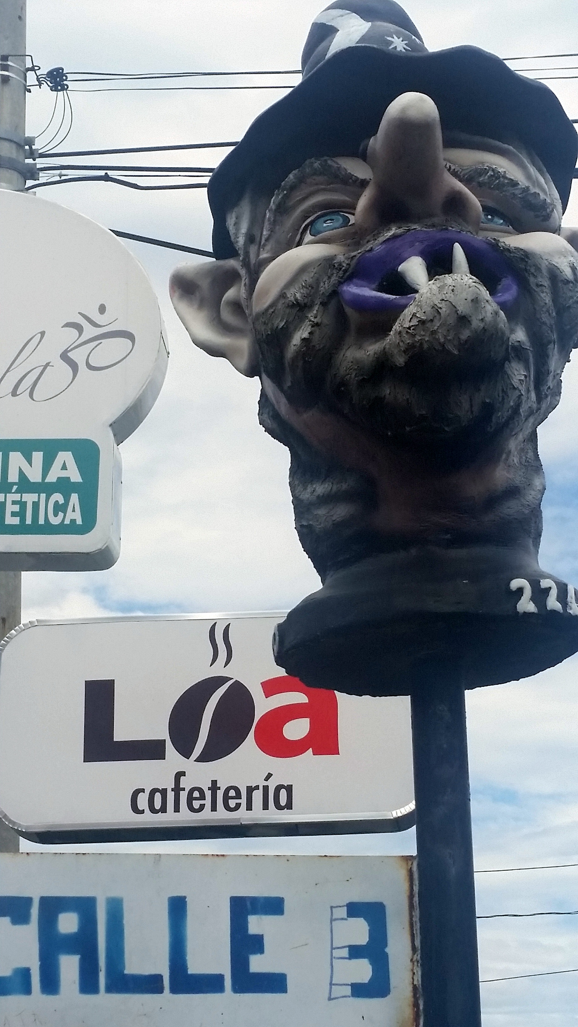 However, my favorite visuals in Barva are, without a doubt, the painted heads. Some on top of street signs and some large enough to stand on their own. These large, carved, theatrical heads are a strange sight to see. But that’s why I like them so much–they’re unexpected.
