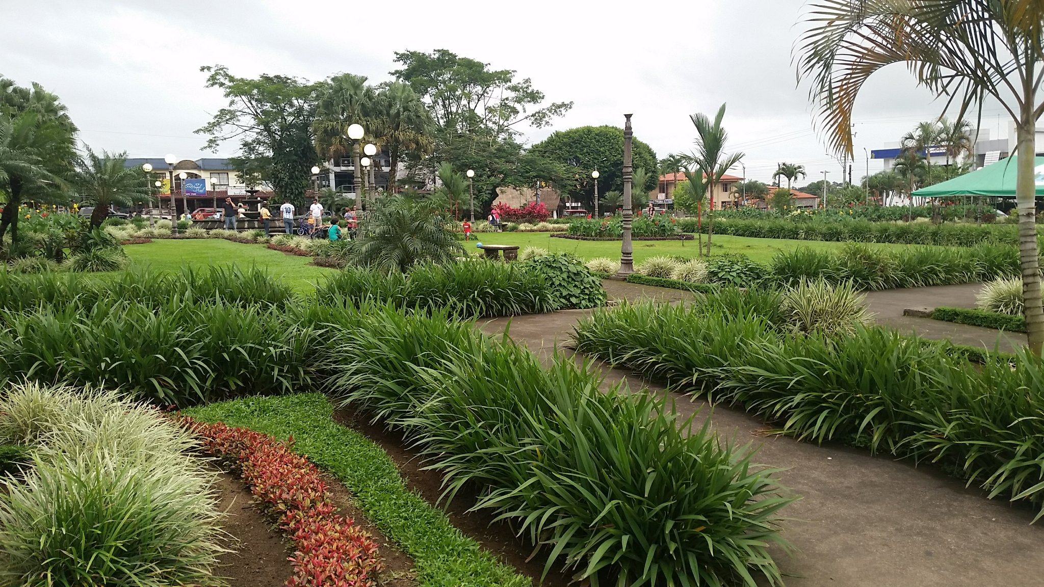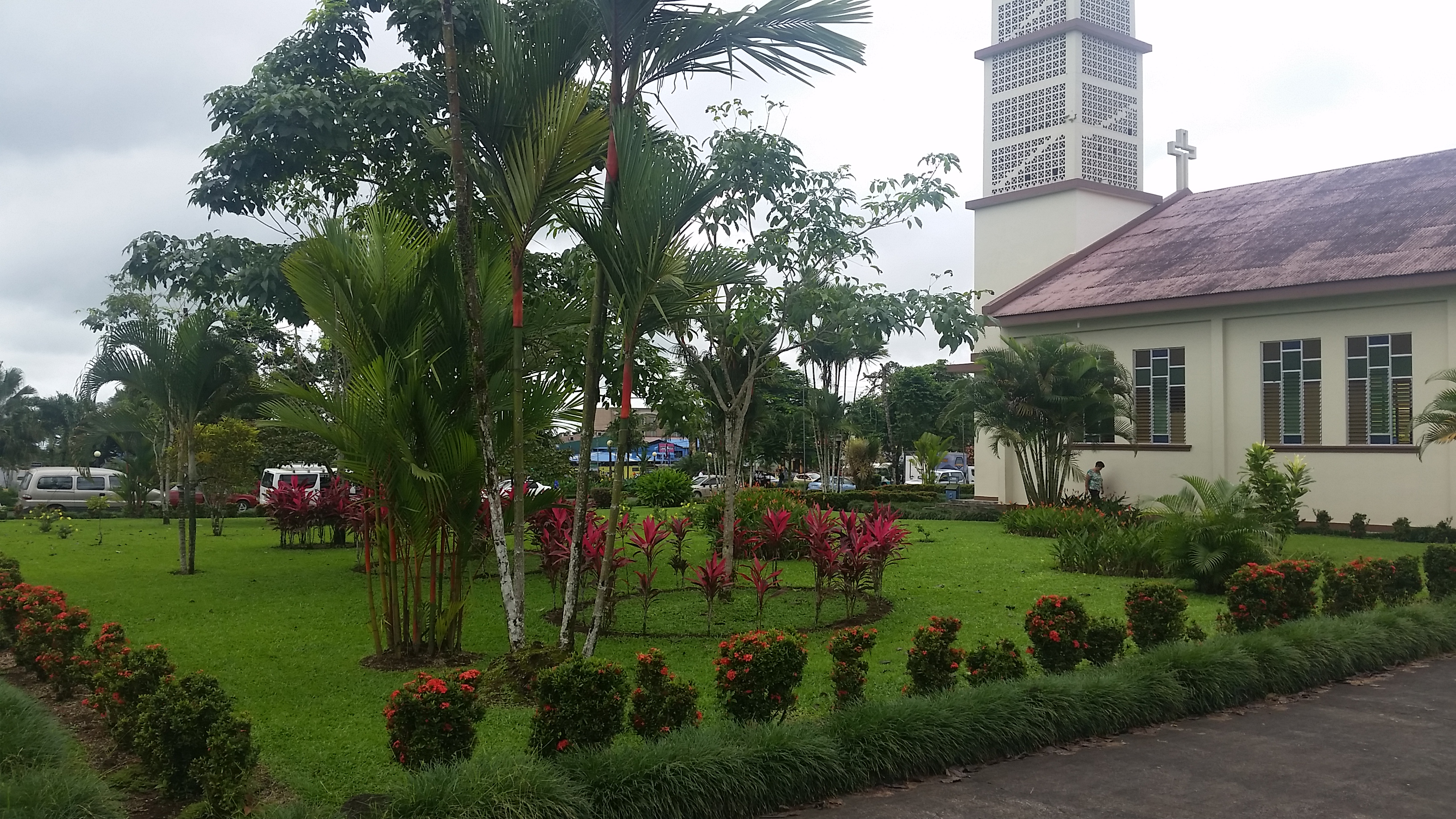 Three of us travelled to La Fortuna (in typical fashion for us–by bus) and we arrived on Friday around 6:00pm. After getting settled in our hostel, we ventured out to eat and explore the town a little. In the center of the town, lies a beautiful garden, with plenty of benches from which to enjoy the view and lights to illuminate the pathways when it gets dark. Across the street, is a church, also surrounded by beautiful foliage and whichever way you turn, the streets are lined with souvenir shops and cute eateries.